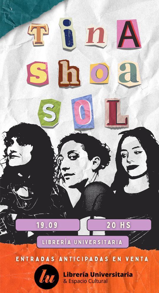 El viernes 19 de septiembre a las 20.30 h se presentarán Shoa Merlot, Tina Dapoisonx y Sol Cerato en un show íntimo que reúne música propia y composiciones originales.