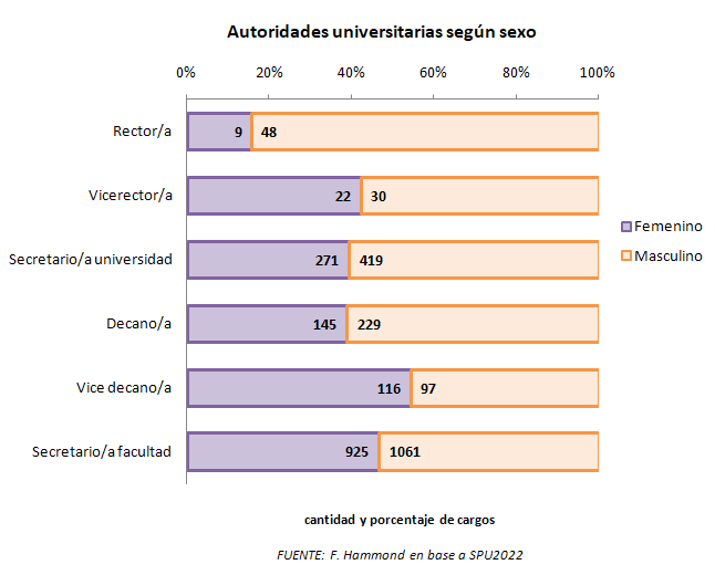 - Gobierno UNMdP: 100% de la fórmula principal (Rectora y Vice) integrada por mujeres. De las 23 secretarías y subsecretarías, 10 son responsabilidad de mujeres.