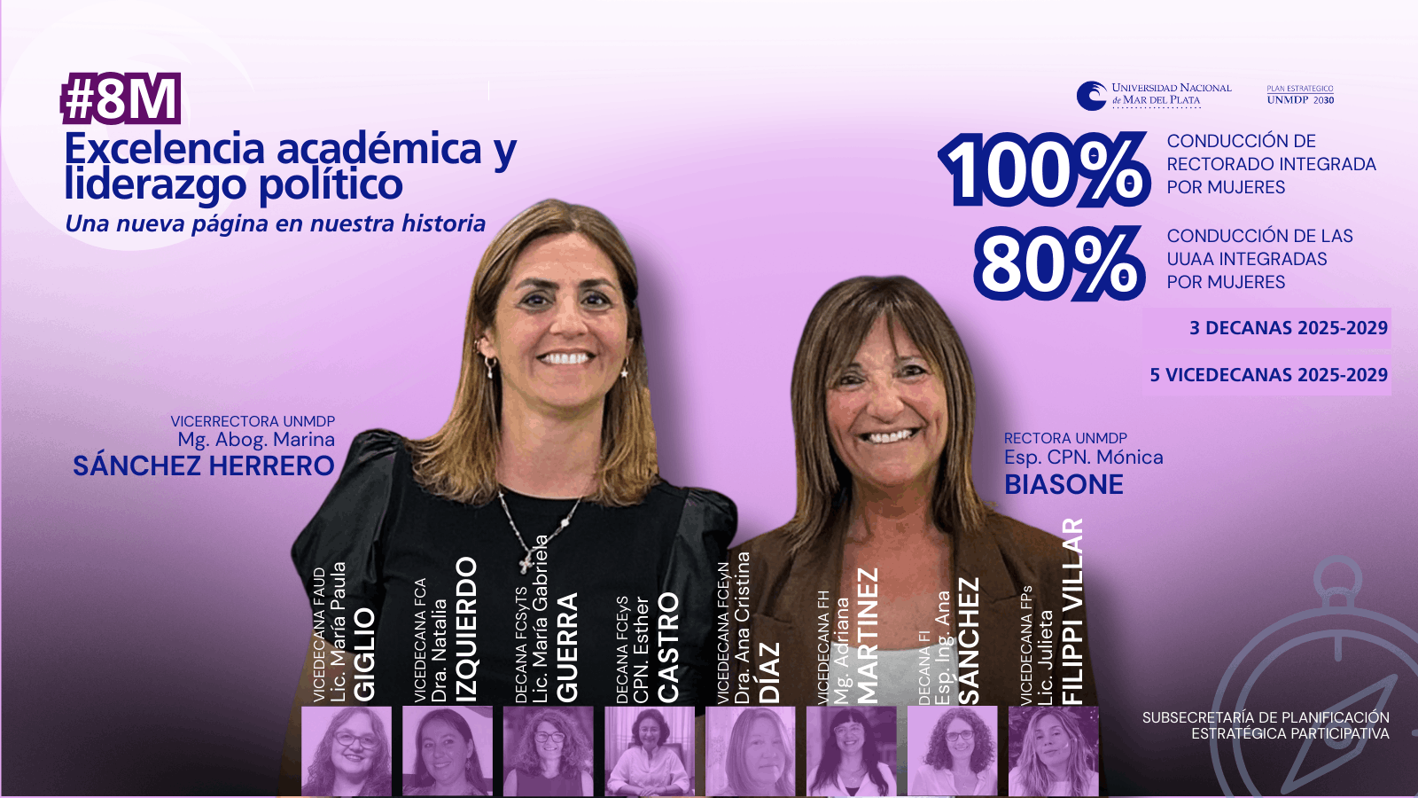 El #8M es, sin dudas, una jornada de reivindicación y visibilización del rol de las mujeres en la sociedad, en el mundo del trabajo y, por supuesto, en el ámbito académico. También desde su contribución al desarrollo de las instituciones y su labor política. Para la UNMdP es una oportunidad para hacer un balance institucional y valorar el compromiso ético y político de la universidad con los derechos humanos y la igualdad.