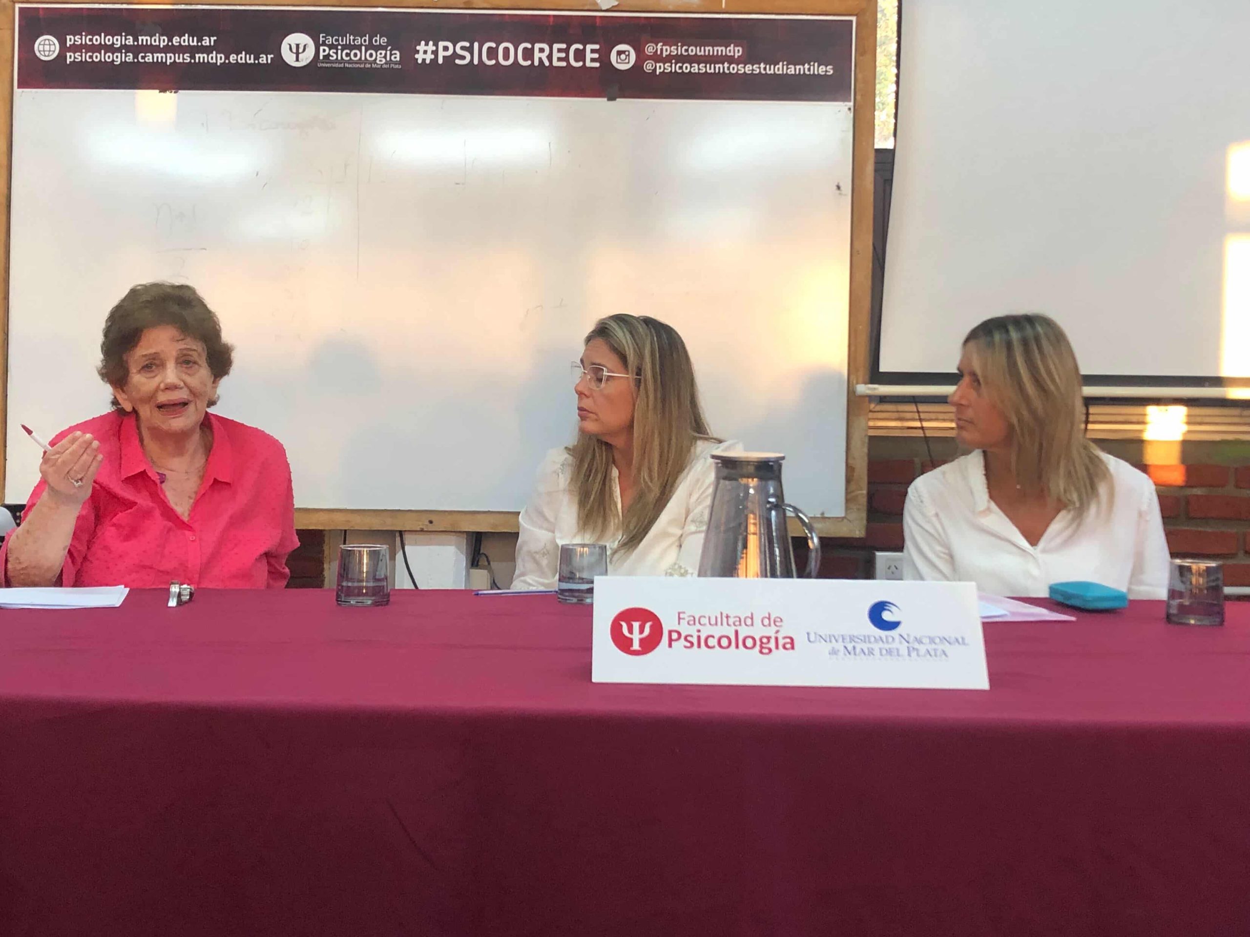La jornada se desarrolló el viernes 24 en el aula 23 y contó con la participación de la psiquiatra, psicoanalista, grupalista y referente en derechos humanos, Diana Kordon; la psicóloga, investigadora, extensionista y vicedecana, Julieta Filippi Villar y la extensionista, profesora titular de la materia Psicología de los Grupos e integrante del Forum de Infancias , Alina Natinzon.