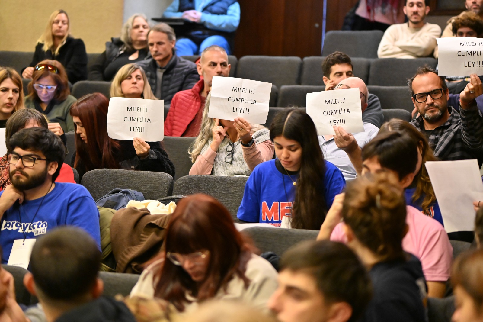 En su intervención, la rectora Biasone fue contundente: “Estamos pidiendo que se cumpla una ley que fue aprobada por la mayoría de los legisladores. Este gobierno se cansó de decir que bajo la ley todo, y no la cumple”.