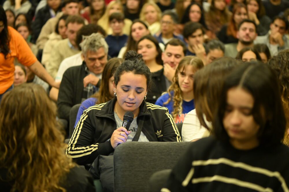 Hacía el fin del momento de los oradores, quienes tomaron la palabra fueron los propios integrantes de la Escuela Superior de Medicina. En primer lugar, lo hizo la Dra. Martina Iparraguirre en representación del cuerpo docente, por el claustro graduados tomaron la palabra la Dra. Marina Bustos, el Dr. Lucio Cerelli y la Dra. Marina Castillo, y como parte del Centro de Estudiantes de Medicina (CEM) lo hizo Mariel Valdez, presidenta del CEM. Todos ellos sumaron sus palabras de agradecimiento por los esfuerzos aunados para la consolidación de este gran logro académico, reconocieron y destacaron el valor de la universidad pública, de la comunidad de la ESM y reforzaron su compromiso profesional.