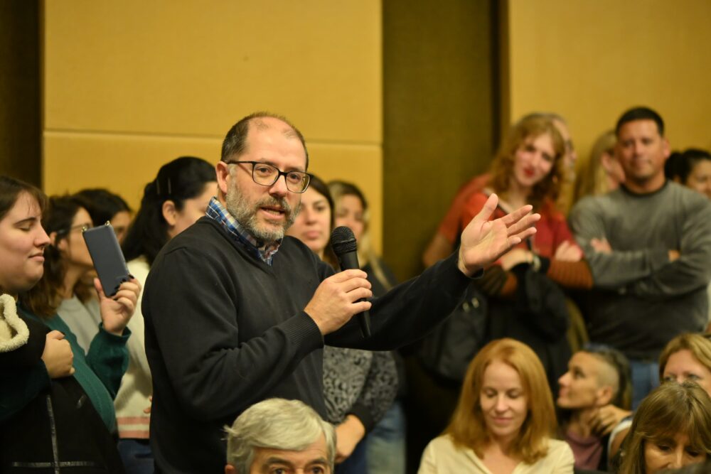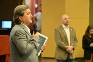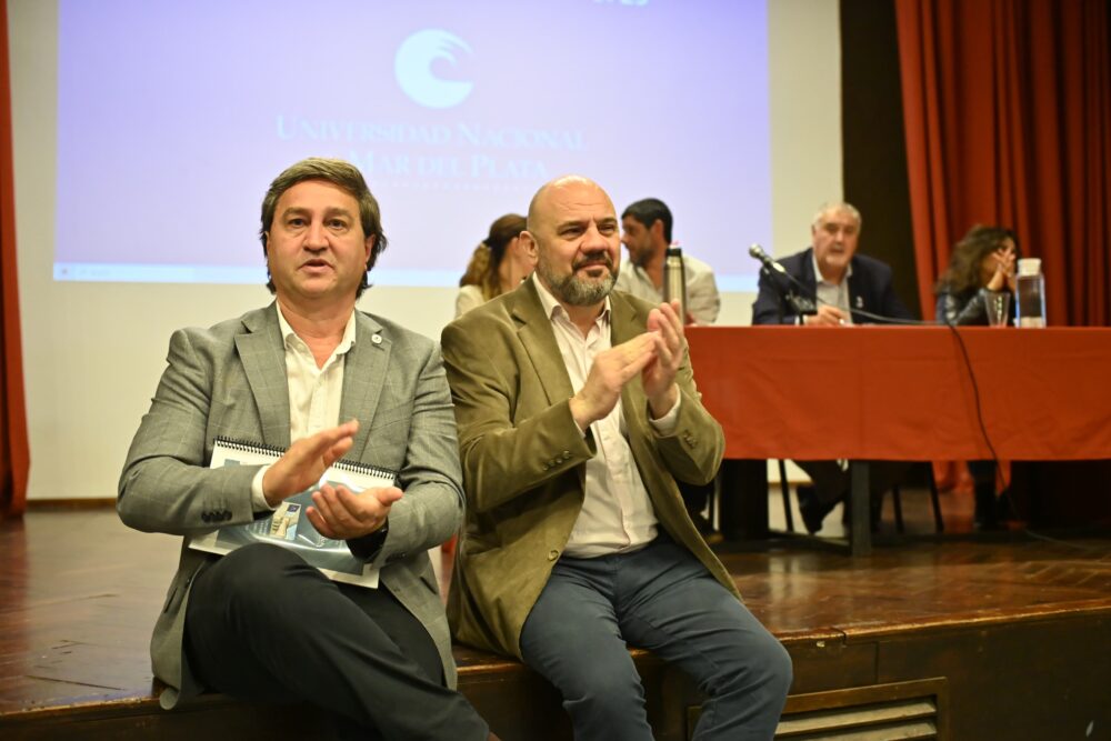 A continuación, las autoridades de la Escuela, el director Adrián Alasino y el vicedirector Gabriel Angelini, brindaron un discurso a la audiencia donde agradecieron la labor de la comunidad en general y subrayaron los inicios e historia de la ESM, así como las figuras destacadas que participaron del proceso de 9 años, desde su apertura, entre quienes destacaron y recordaron al exrector, Francisco ‘Pancho’ Morea quien fue pionero en la incorporación de la formación en Medicina en la UNMDP. Finalmente, expusieron lo presentado en el informe que se manifestó en el Superior, donde se acreditan los pasos necesarios para el cambio estatutario.